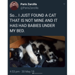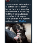 Update: he finally got the cat to the vet to see if she had a microchip